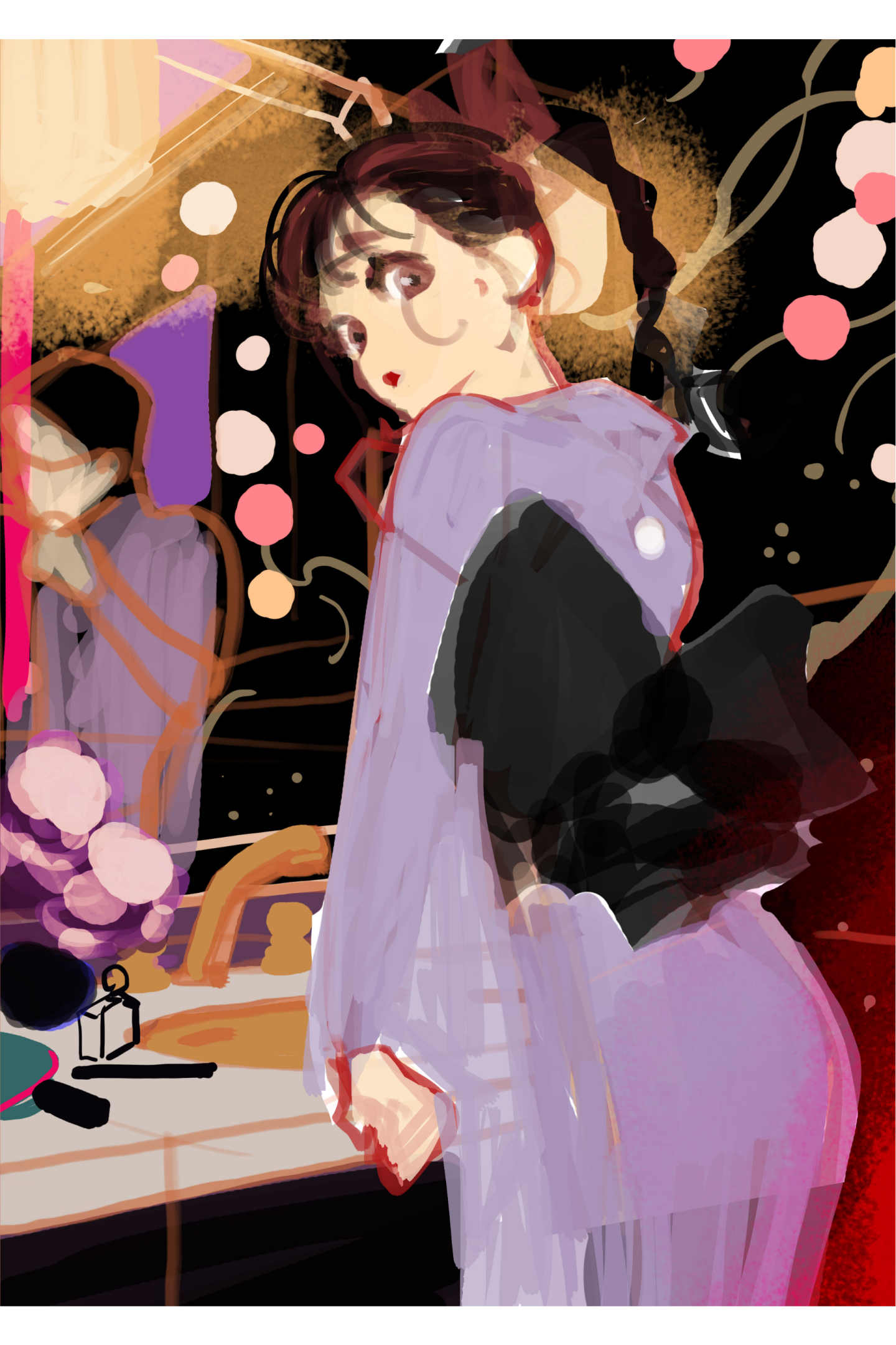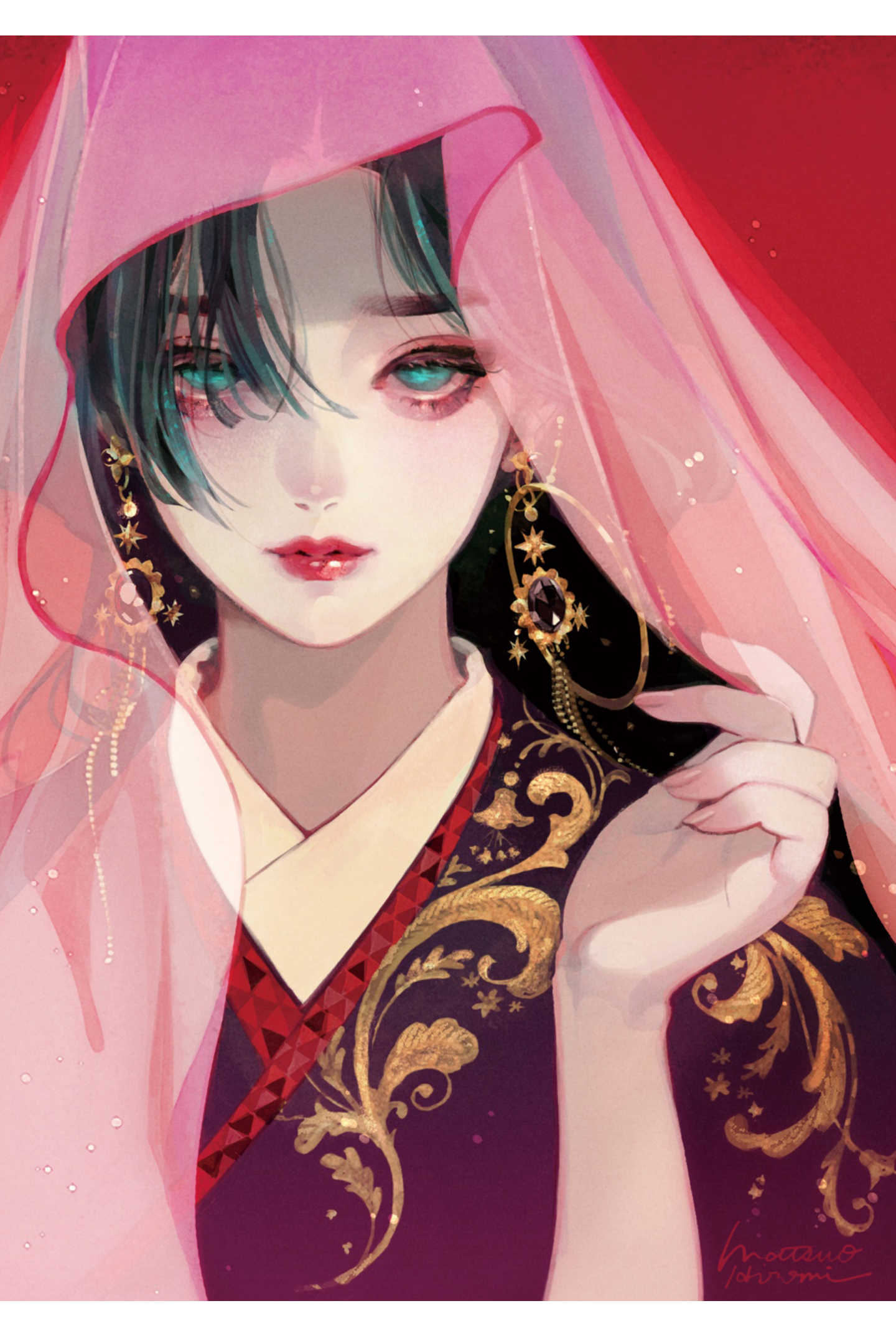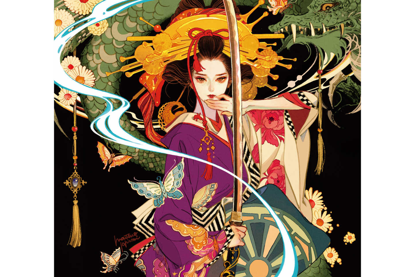 細部までこだわり抜いて描かれる着物のデザインや装飾、煌びやかな衣装に飾られた女性たちからは、かわいらしさであったりミステリアスな雰囲気を感じられます。