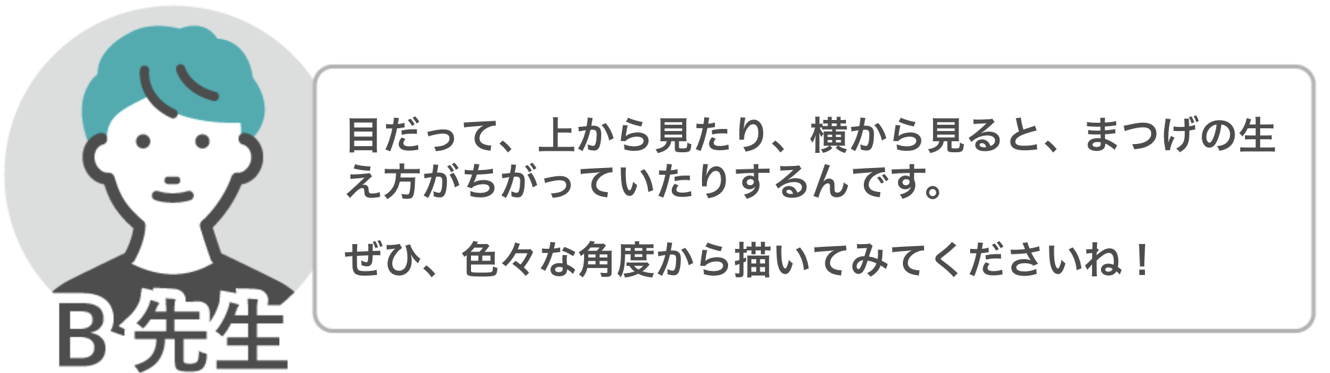 | Q2「横顔や手など、描きたいものがあっても何か上手く描けないです…」 | A2:いろいろな角度から描こう & 具体的な数値を測って描こう! |