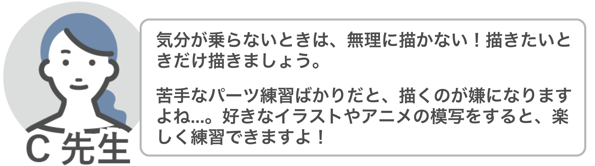 理想通りに描けず、もどかしい思いをすることもありますが、楽しく継続することを意識してみてください。